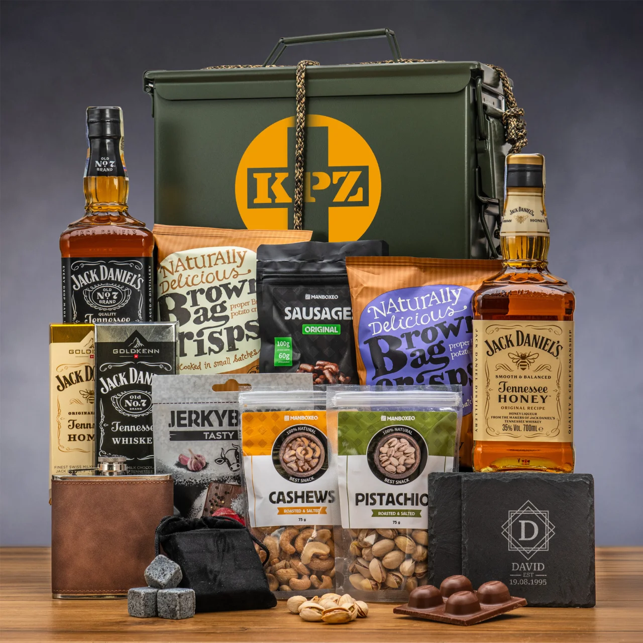 Co v sobě ukrývá tahle drsná bedna? Výbornou whiskey a tomu další pochoutky, které jen čekají na to, až je obdarovaný všechny rozbalí a ochutná. Se skleničkou luxusního pití to bude tak dokonalá kombinace, že si váš vyvolený bude přidat jak v říši snů. Na tenhle zážitek jen tak nezapomene!