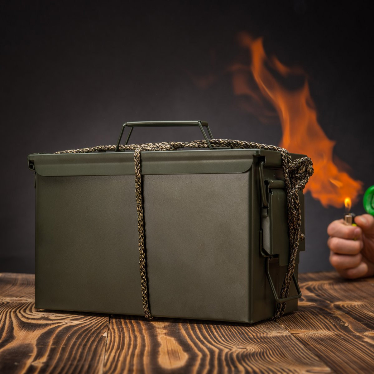 - součástí jsou 3 metry paracordového lana, kterými můžete bednu převázat