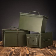 - stylová kovová muniční bedna se sklopným madlem pro snadné přenášení
