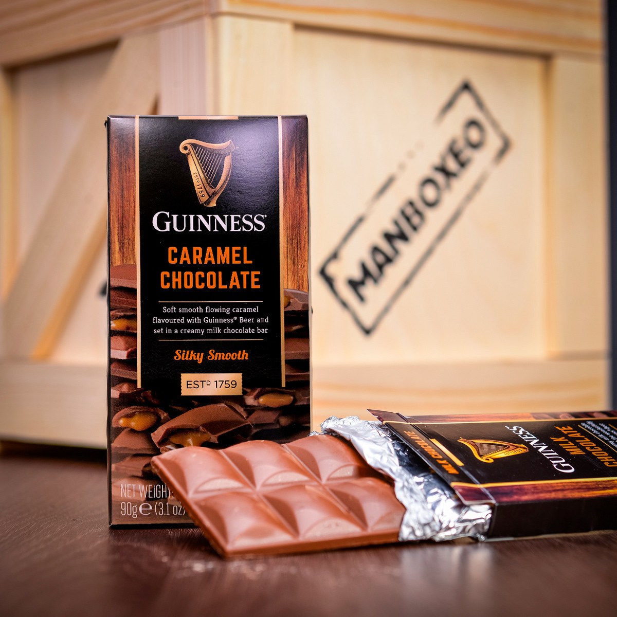 Mléčná čokoláda Guinness s karamelem 90 g – Vysoce kvalitní jemná mléčná čokoláda je plněná karamelem a lehce ochucená světoznámým pivem Guinness. Tuhle lahůdku zkrátka musí ochutnat každý milovník piva.