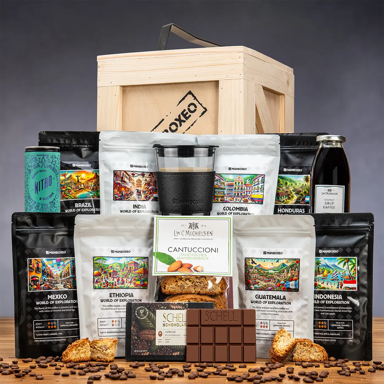 Odpověď najdete na dně naší bedny. Až po okraj jsme ji naplnili výběrovou kávou, kávovými specialitami i sladkostmi, které se k tomuto božskému nápoji skvěle hodí. Obsah zajistí obdarovanému chvíle pohody, případně ho nabudí, když bude potřebovat extra dávku kvalitního kofeinu a cukrů. Hotová slast!