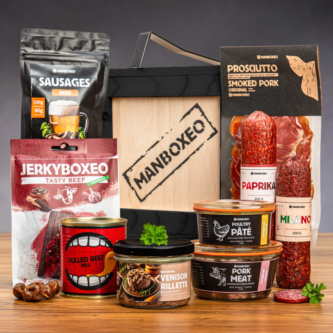 Připravte si talíře a něco dobrého na zapití – tohle bude hotový chuťový tobogán! Bedna pro masožravce ukrývá nejrůznější gastro poklady pro opravdové milovníky masa – od rillettes přes trhané maso až po jerky a klobásky. Všechno chutná poctivě, jako od maminky.
