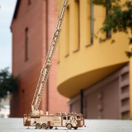 Naštěstí už jede hasičský vůz, který plameny rychle uhasí. Mechanická stavebnice má gumičkový pohon, díky kterému se může po natažení sama pohybovat. Samozřejmostí je výsvuný žebřík na střeše, dveře, které se dají otevřít a výsuvné stabilizátory. Velmi detailní model odpovídá reálnému hasičskému vozu, který zachraňuje životy a bojuje s plameny.