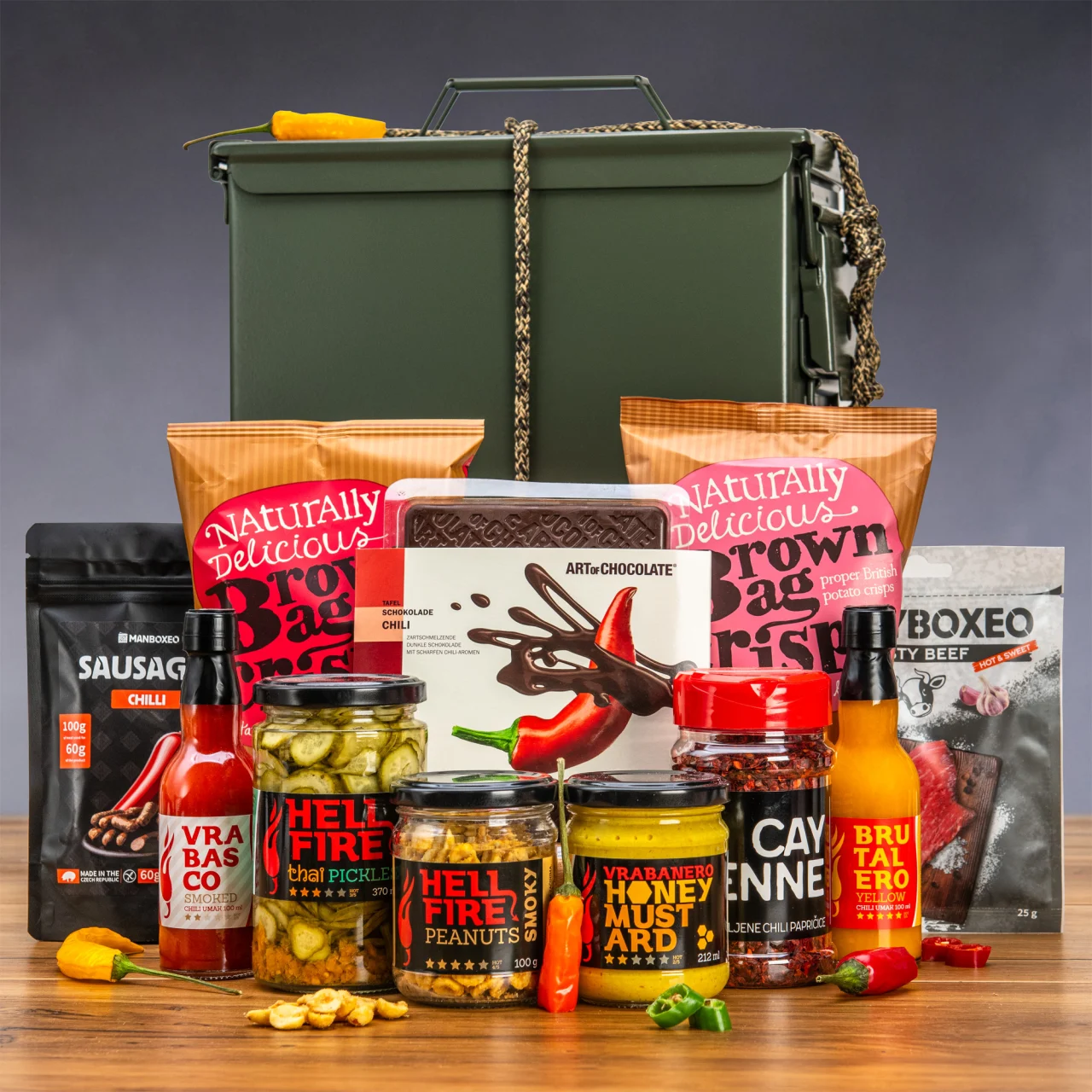 Co přijde po vyhraném souboji? Zasloužená odměna! Bednu jsme totiž naplnili gastro poklady, v nichž hlavní roli hraje ostrost. Připravte se na chilli chuťovky, omáčky i sladkopálivou tečku. Zkrátka vše, co milovníkům pálivého přijde k chuti. A co v obchodě rozhodně neseženete.
