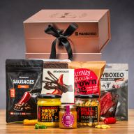 Jakmile se oslavenec dostane dovnitř, nebude vědět, co dřív ochutnat. A není se čemu divit! Box jsem totiž naplnili gastro poklady, v nichž hlavní roli hraje ostrost. Připravte se na chilli chuťovky, omáčky i sladkopálivou tečku. Zkrátka vše, co milovníkům pálivého přijde k chuti. A co v obchodě rozhodně neseženete.