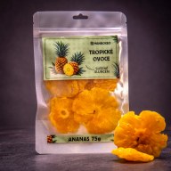 Sluncem sušené kousky tropického Ananasu 75g - Na kousky nakrájený a sušený ananas, který vás ohromí výjimečnou chutí a vůní. Sladký je tak akorát, aby vám nezalepil pusu.