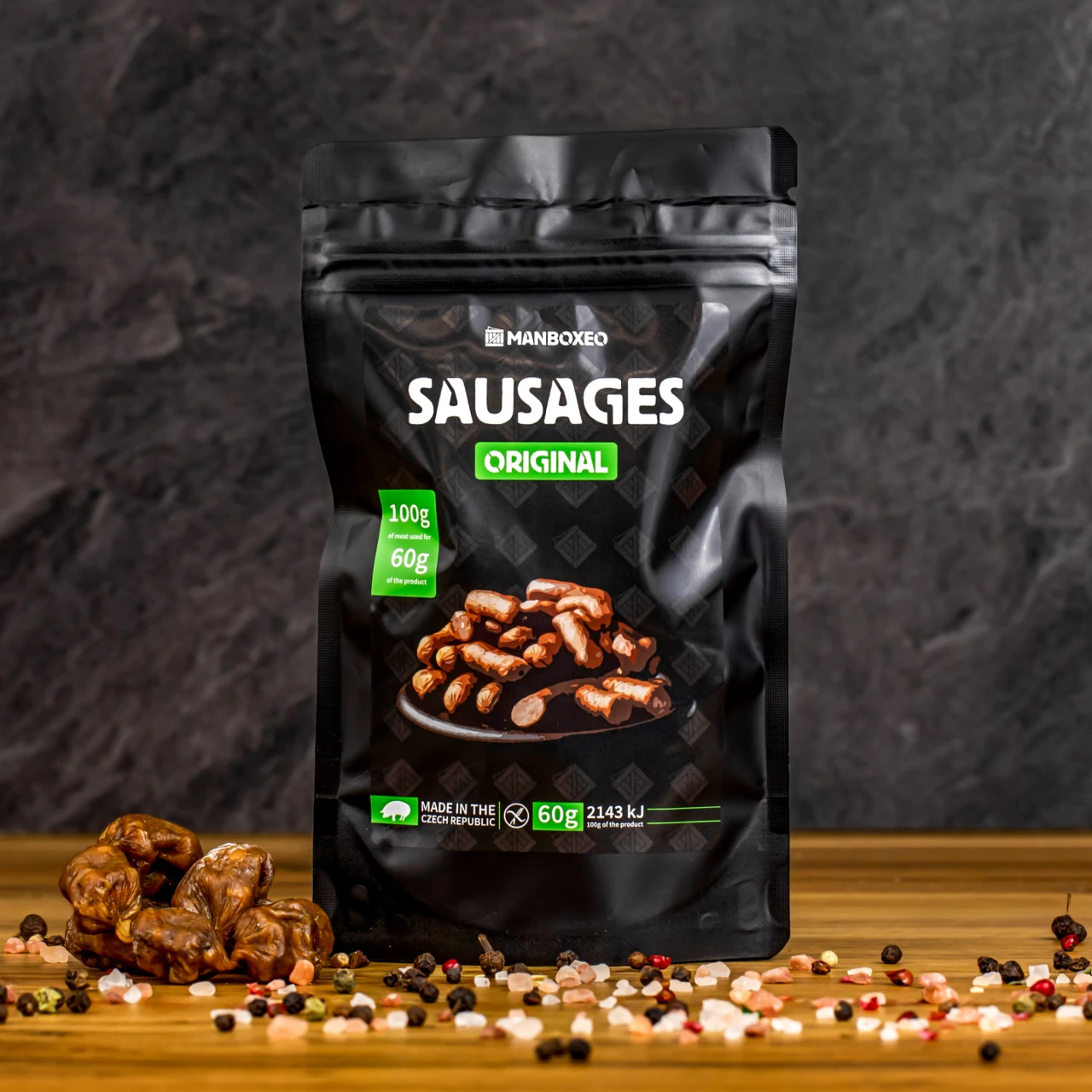 Uzené klobásky dle původní receptury ORIGINAL 60g - Kvalitní porce uzenin se dokonalé hodí k pivu, ale i k potěšení mlsných jazýčků. Po těhle mini klobáskách se budete moct doslova utlouct. Čeká vás jedinečná kombinace chutí a vůní, které prostě neodoláte.