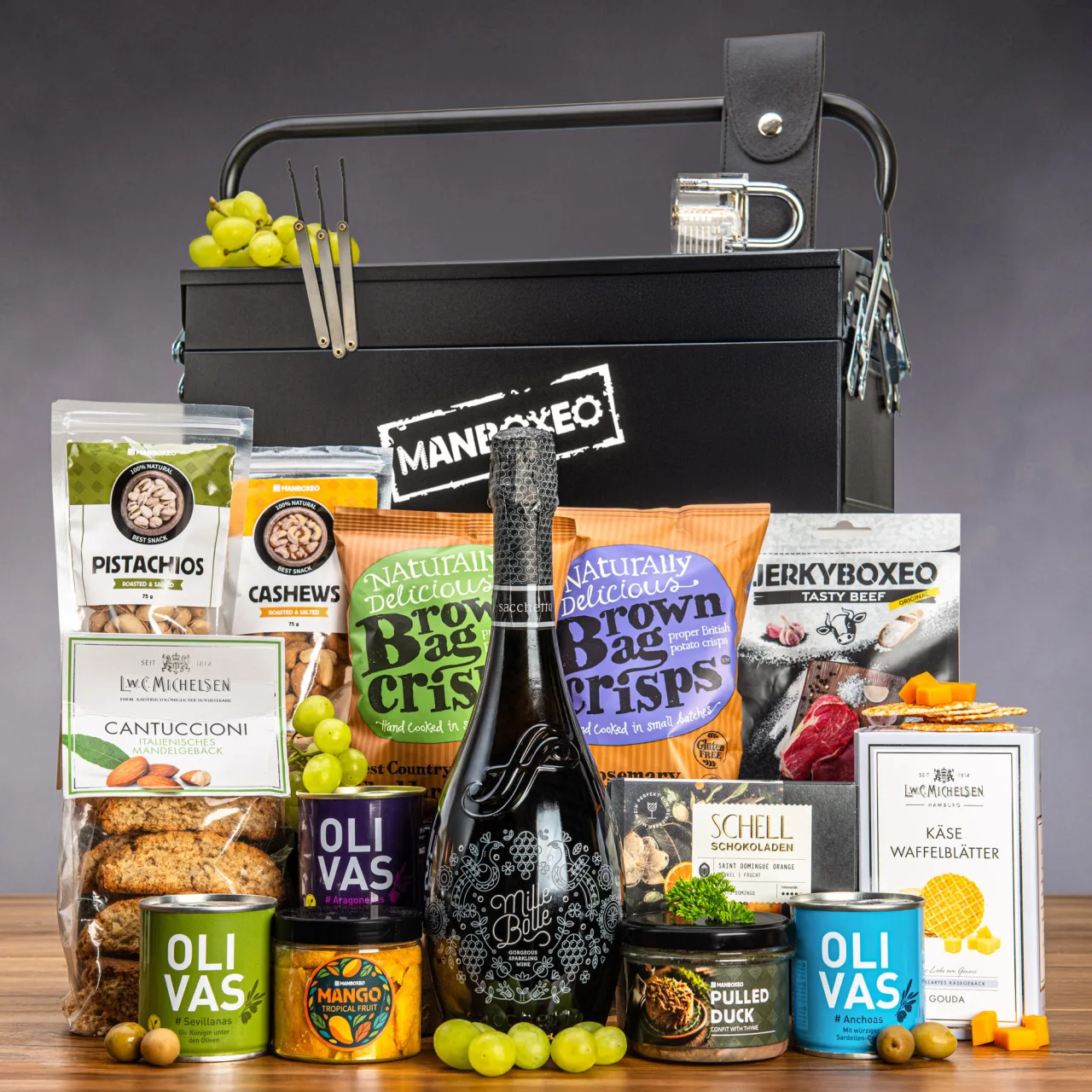 Mysleli jste si, že v tomhle plecháči se ukrývá jen a pouze nářadí? Omyl, dámy a pánové. Ten, komu tuhle parádu darujete, uvnitř najde hotový gurmánský zážitek. Lahev kvalitního prosecca jsme doplnili luxusními chuťovkami, které k dobrému pití sednou naprosto fantasticky. Vybrali jsme dobroty masové, slané i sladké. A každá z nich přímo volá po ochutnání a vychutnání. K tomu jsme ještě přidali speciální multifunkční nástroj pro kutily jako překvapení.