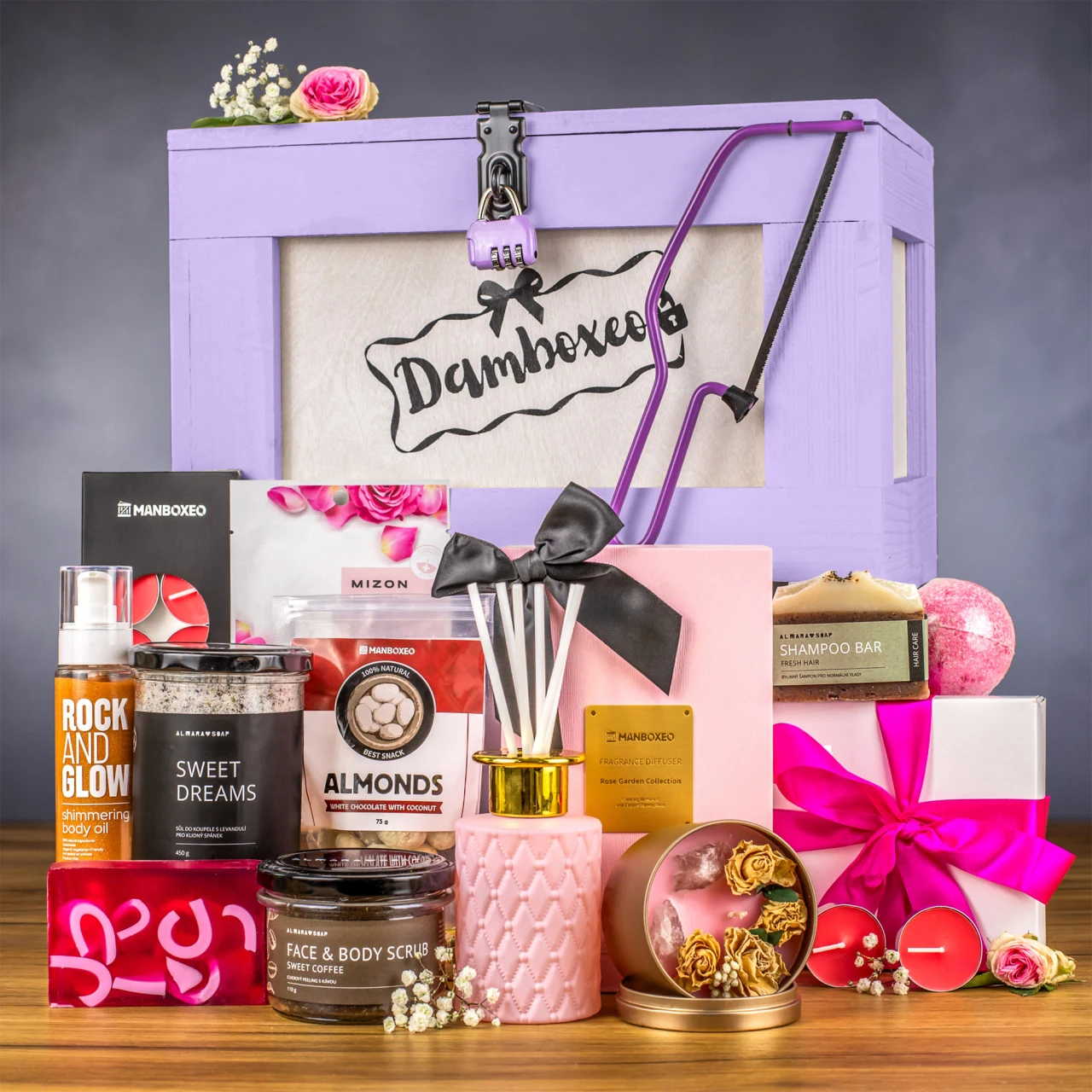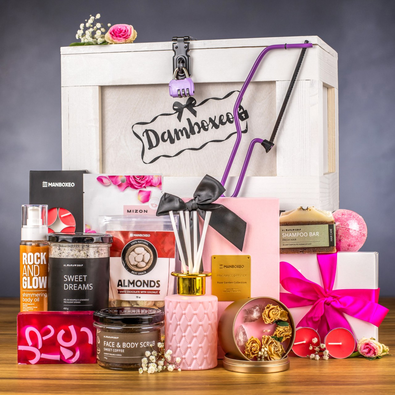 Zámek padl? Pak na vaši oslavenkyni čeká zasloužená odměna. Truhla je až po víko napěchovaná voňavými a jedlými dárky. Lahev kvalitního prosecca jsme doplnili luxusní kosmetikou, vonnými svíčkami a sladkou tečkou, které společně vytvoří dokonalý relaxační zážitek. Zkrátka takové wellness, akorát v pohodlí domova. A to chcete. Odteď už se mezi ženu a truhlu nestavte, mohli byste přijít k úhoně!