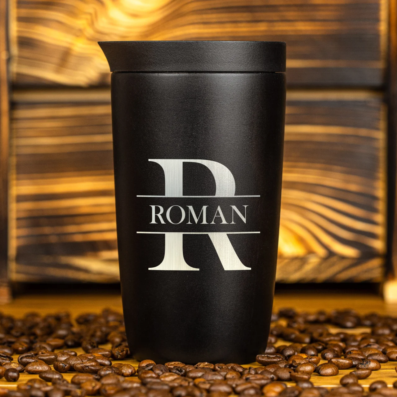 ☕ Nerezový černý termo hrnek na kávu nebo čaj s gravírováním