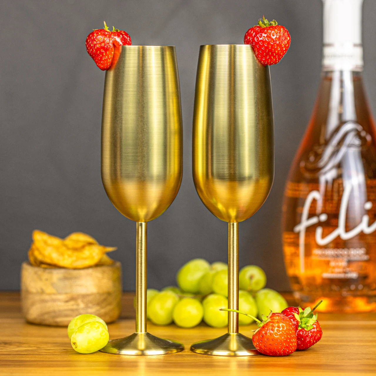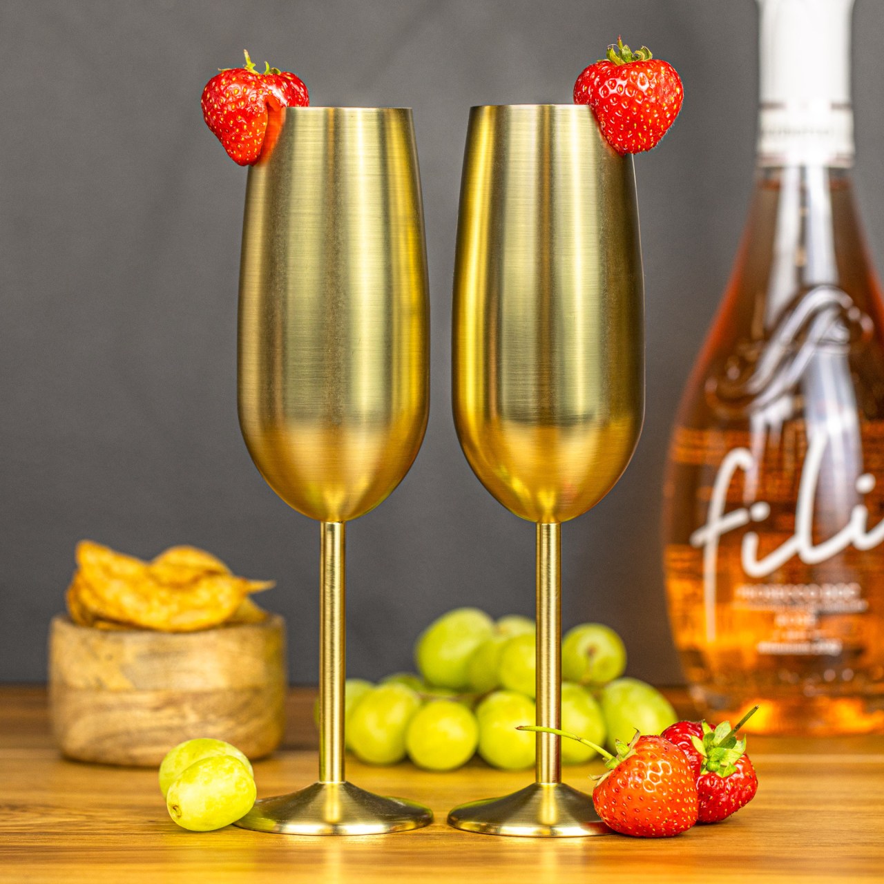 Nerezové skleničky na prosecco jsou perfektní volbou pro party, oslavy, svatby, letní grilování i romantické večery. Díky elegantnímu a modernímu designu vypadají luxusně a skvěle doplní každý stůl doma, na terase, u bazénu i na zahradě. Užij si prosecco, šampaňské nebo oblíbený drink stylově a bez starostí.