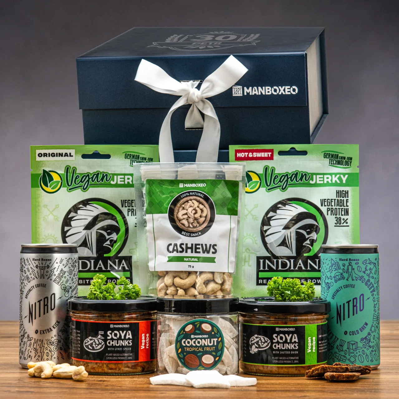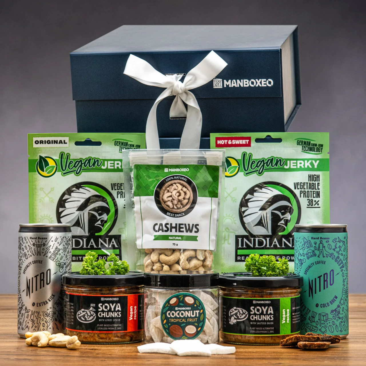Co v sobě tahle nenápadná krabička ukrývá? Velké věci! Obdarovaný se může těšit na veganské speciality, které okouzlí všechny jeho smysly. Nejrůznější chuťovky, prémiová káva, a tím zdaleka nekončíme. Tohle se stejně musí zažít na vlastní kůži nebo spíš smysly?