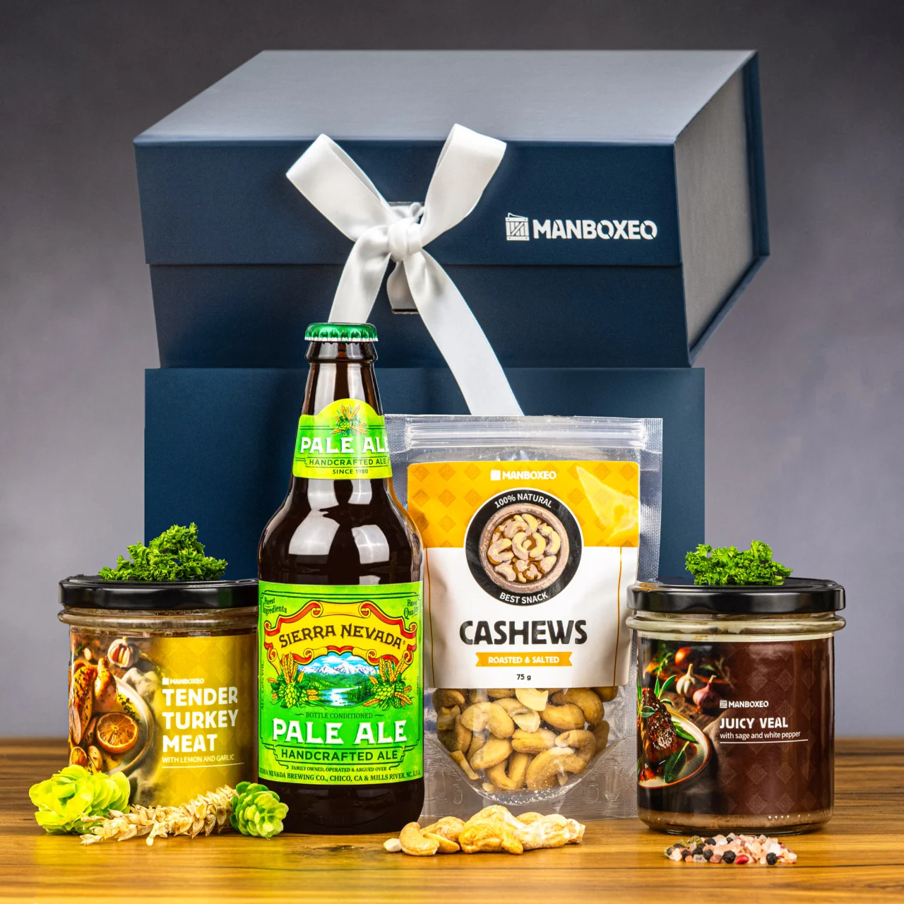 Pivo, maso a žádné kudrlinky kolem. Trhané krůtí, telecí a oříšky v kombinaci, která funguje sama o sobě. Až bude snězeno a vypito, zůstane box. Na věci, co chces mít po ruce. Nebo schované.