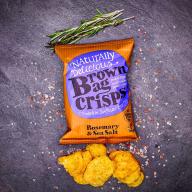 Brambůrky Brown Bag Crisps - rozmarýn a mořská sůl 40 g — Totální chuťová bomba. Ručně vyráběné chipsy vyladěné v Anglii k dokonalosti příchutí mořské soli a rozmarýnu. Všechny ingredience jsou 100% přírodní a jejich souhra vás naprosto dostane.