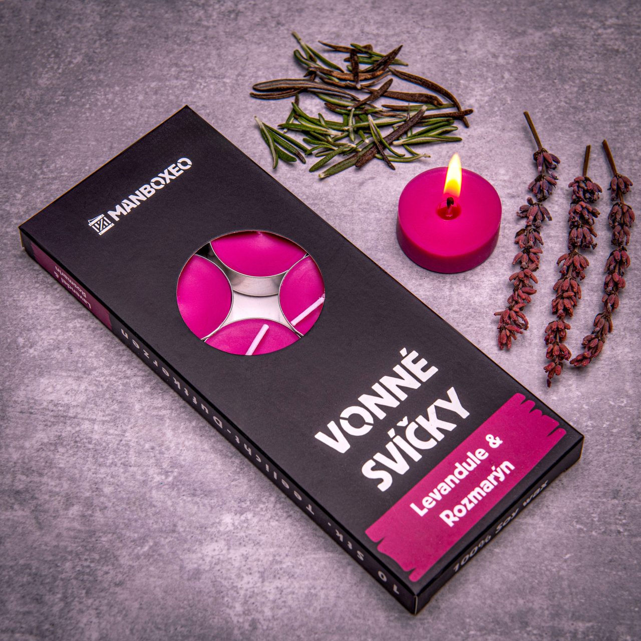 Fialovočerné VONNÉ SVÍČKY 10ks - LEVANDULE & ROZMARÝN - Kapka levandule, špetka rozmarýnu a kvalitní sójový vosk. Z téhle kombinace nemůže vzejít nic špatného. Jen příjemná vůně a krásná atmosféra.