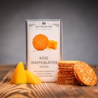 Sýrové vaflové sušenky s příchutí Goudy 100 g — Zakřupejte si! Pořádně vypečené plátky s příchutí goudy budou skvělým společníkem ke skleničce prosecca a skvěle si rozumí s dalším slaným zobáním.