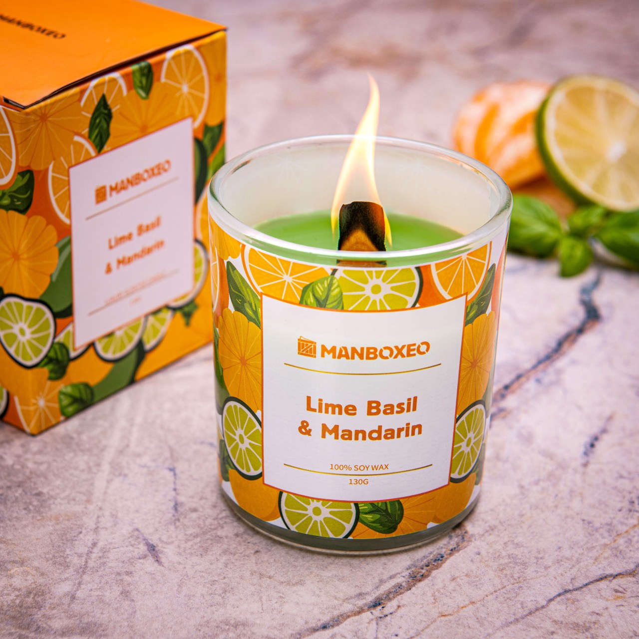 Vonná svíčka - LIME BASIL & MANDARINE - 130g - Svěží citrusová vůně s tóny limetky, bazalky a mandarinky dodá prostoru energii a svěžest. Osvěžující kombinace ideální pro každodenní použití.