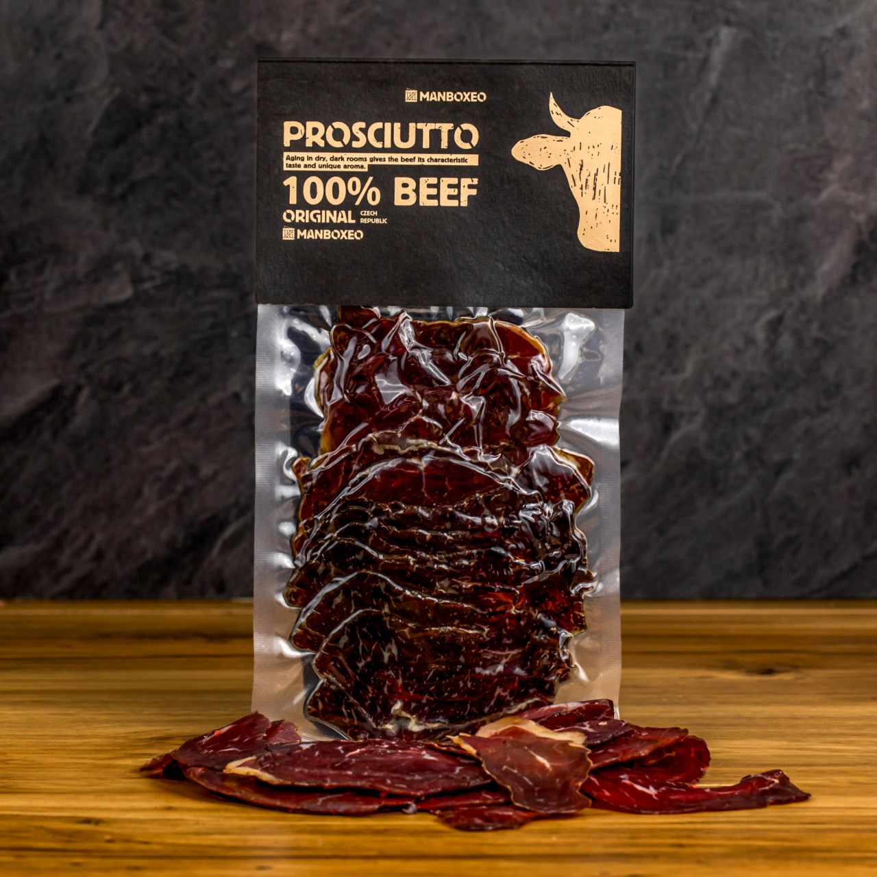 Hovězí pršut 100g - Výtečný pršut z rodinného podkrkonošského řeznictví si prostě zamilujete. Díky zrání v tmavých a suchých místnostech se u něj naplno rozvinula charakteristická chuť i aroma. Dobrou chuť!