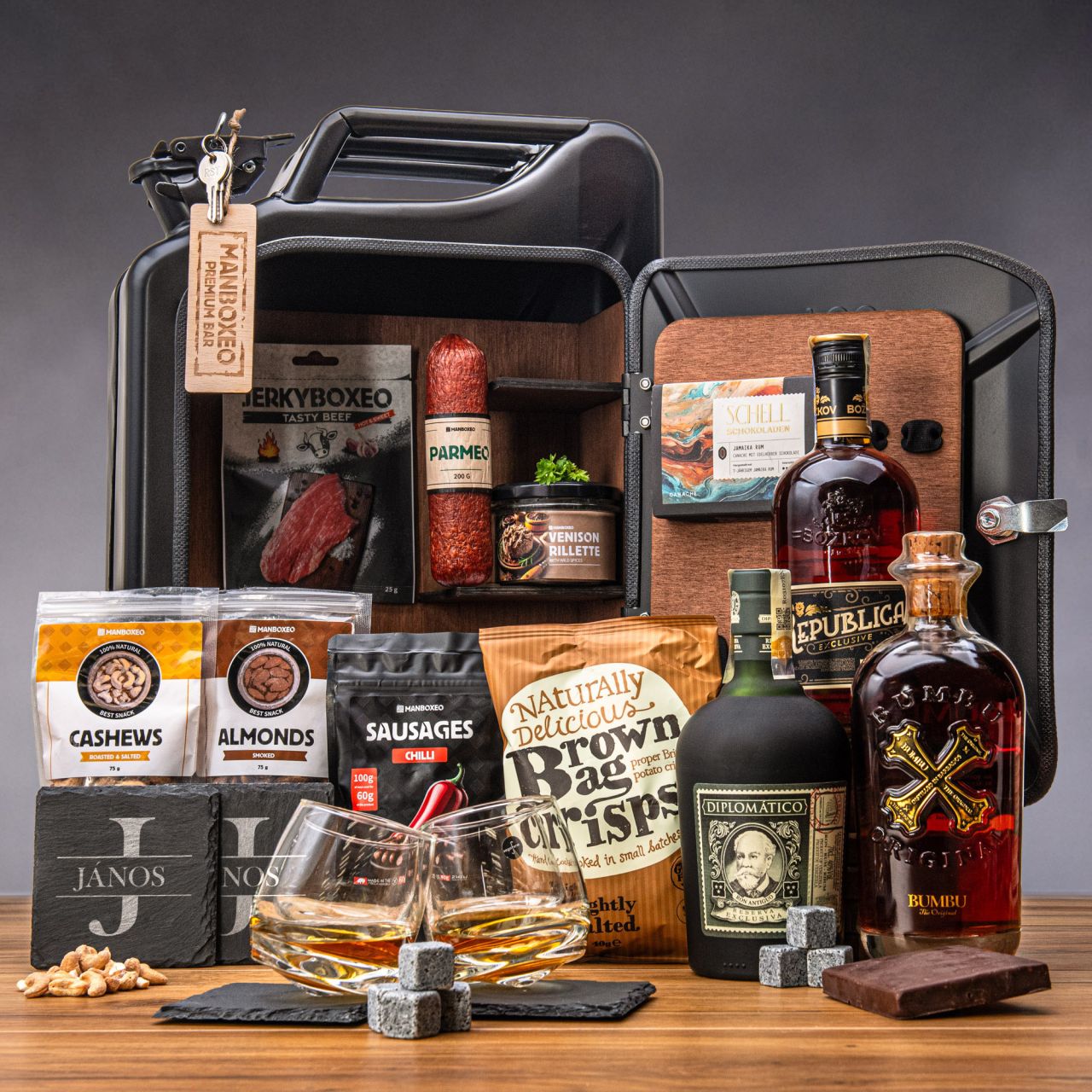 Připijte si na zdraví a štěstí oslavence obsahem našeho kanystr baru. Kromě lahve kvalitního rumu uvnitř najdete vychytávky, díky kterým bude každý panák chutnat ještě o kapku líp. Navíc jsme přidali i sladké a slané dobroty, které podtrhnou všechny chuťové tóny whisky. A jak konzumaci obsahu dotáhnout k dokonalosti? Dobrou společností!