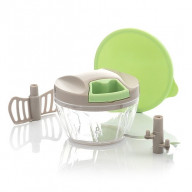 Originální a praktický ruční mlýnek funguje na principu tahání za provázek, aby se sekací mechanismus uvedl do chodu. Čím déle přitom budete za provázek tahat, tím jemněji budou potraviny nasekané. Ostré nože si poradí se zeleninou i bylinkami, zvládnou dokonce vyrobit i hladké pesto nebo pyré. Sada navíc obsahuje nástavec na šlehání a míchání (například vajec), který vyměníte za nože, a také praktické víko, kterým mlýnek uzavřete a nasekané potraviny v něm můžete rovnou uchovávat.