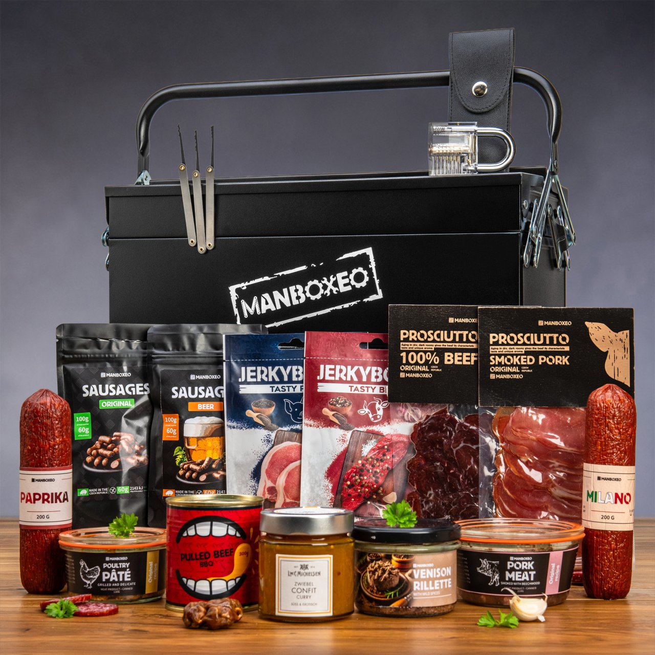 Mysleli jste si, že v tomhle plecháči se ukrývá jen a pouze nářadí? Omyl, dámy a pánové. Ten, komu tuhle parádu darujete, uvnitř najde hotový gurmánský zážitek. Nejrůznější pochoutky z masa, od paštiky, přes salámy až po pršut a jerky. Vše dokonale poctivé, jako od maminky!