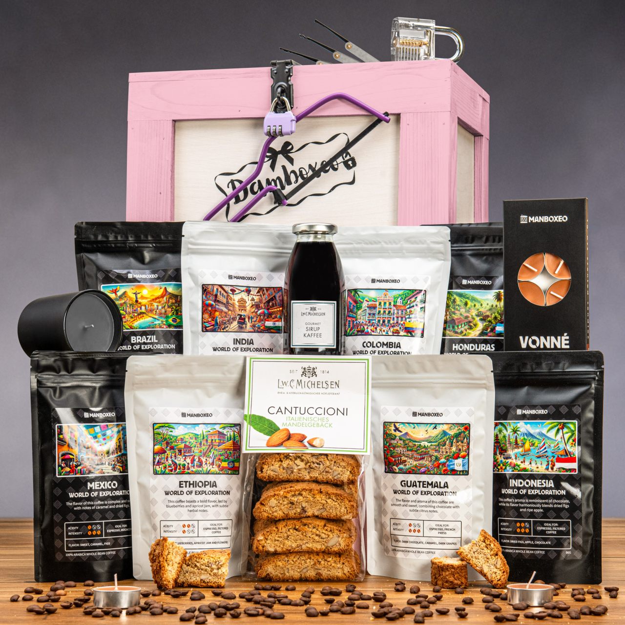 Zámek padl? Pak na vaši oslavenkyni čeká zasloužená odměna. Truhlu jsme až po okraj naplnili výběrovou kávou, kávovými specialitami i sladkostmi, které se k tomuto božskému nápoji skvěle hodí. Obsah zajistí obdarované chvíle pohody, případně ji nabudí, když bude potřebovat extra dávku kvalitního kofeinu a cukrů. Hotová slast!