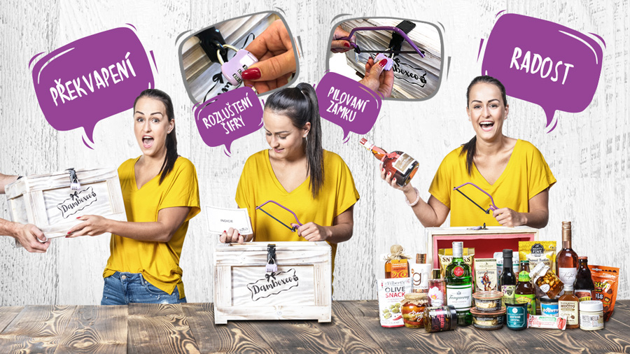 Na truhle se houpe malý zámeček, ale klíč nikde, tak jak se dostat dovnitř? Spolu s truhlou oslavenkyně dostane i tajnou šifru, po jejím vyluštění získá číselný kód, který zámeček otevře. Nedaří se? Pak přichází čas na záložní plán a tím není nic jiného, než použití přiložené pilky. S její pomocí oslavenkyně zámeček upiluje a vám už nezbývá nic jiného, než se těšit, jak se jí rozzáří oči, až víko truhly odklopí.